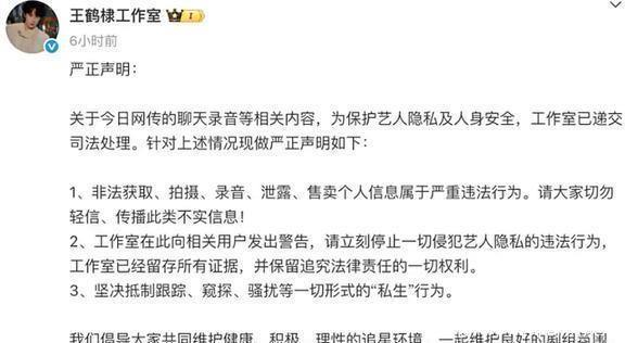 这网上传的内容是假的,私自录音可是违法的,严重得很!后来,发料的那人因为违反了社区规定,被禁言了。王鹤棣很清楚地说,他坚决不接受任何形式的和解和调解,还强烈反对所有的不合法行为。